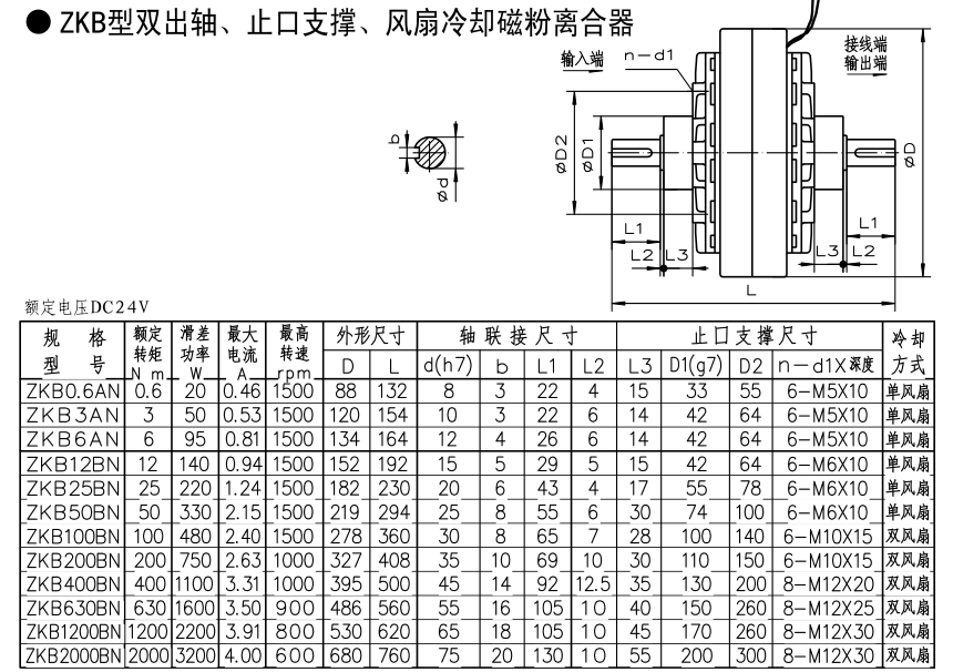 晨港機電ZKB型雙出軸止口支撐風扇冷卻磁粉離合器標準參照日本三菱電機ZKB-AN和ZKB-BN,產品規格型號和日本原裝產品一致,在性能使用上可以替代日本原裝產品,降低設備維護與制造成本。目前ZKB雙出軸磁粉離合器有:0.6N.m 3N.m6N.m 12N.m 25N.m 50N.m 100N.m 200N.m 400N.m 630N.m 1200N.m 2000N.m多種扭矩。